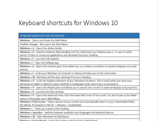 Кроме того, если вы хотите загрузить аналогичный документ, созданный Microsoft, но с меньшим количеством сочетаний клавиш, проверьте эту веб-страницу: сочетания клавиш для Windows 10.