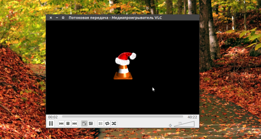 Если все прошло успешно появиться главное окно VLC с индикатором воспроизведения, начнется потоковое вещание VLC: