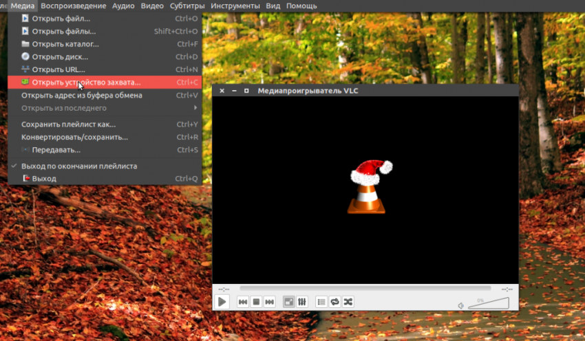 Затем откройте меню Медиа и выберите пункт Открыть устройство захвата: