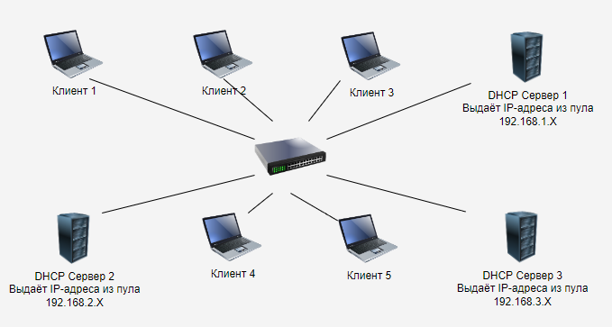 Если в одном широковещательном домене появляется несколько DHCP серверов, то клиент примет настройки от того DHCP сервера, который ему первее ответит. При этом, разные DHCP сервера могут выдавать разные сетевые настройки и IP-адреса из разных подсетей. Получится ситуация, что одни клиенты получат одни сетевые настройки, а другие — другие сетевые настройки. При этом локальная сеть ломается и сетевому администратору нужно понять — почему.