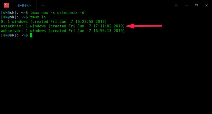 Приведенная выше команда создаст новый сеанс Tmux под названием «ostechnix», но не будет к нему подключаться.