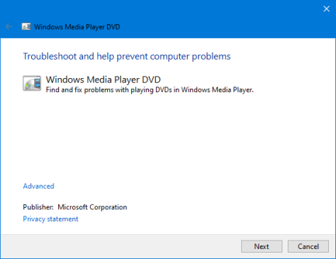 msdt.exe -id WindowsMediaPlayerDVDDiagnostic