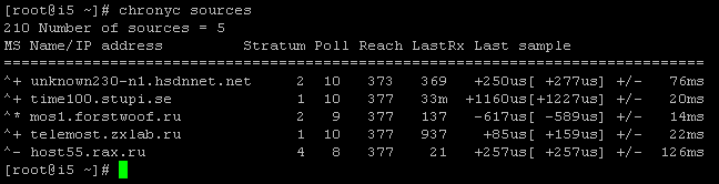 Чтобы проверить информацию об источниках chrony, можно выполнить следующую команду: