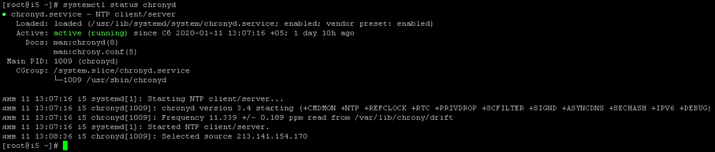 Как и любой другой сервис, после установки chrony нужно включить и добавить в автозагрузку: