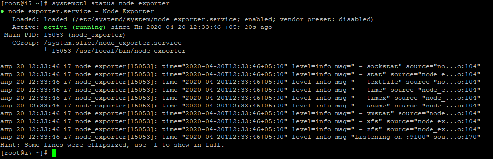 Node Exporter — сервис, задача которого заключается в экспорте информации о машине в формате, понятном Prometheus’у. Вообще, для Prometheus написано множество готовых exporter’ов практически под все существующие системы — всякие там web-серверы, СУБД, очереди сообщений, и так далее. В рамках этой заметки мы будем использовать только Node Exporter. Настройка других exporter’ов вряд ли будет сильно отличаться.