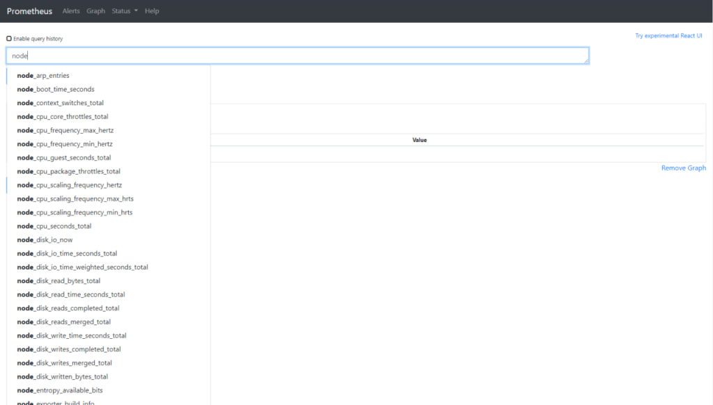 Чтобы убедиться, что экспортеры работают правильно, выполните несколько выражений Node Exporter.