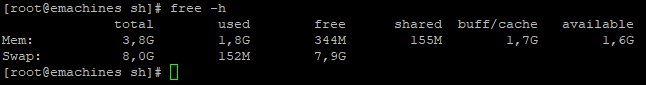Если вы хотите проверить результаты, выполните команду free в терминале. Флаг -h отображает вывод free в удобочитаемом формате и выводит сумму в мегабайтах.