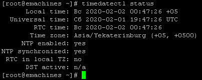 # ln -s /usr/share/zoneinfo/Asia/Yekaterinburg /etc/localtime