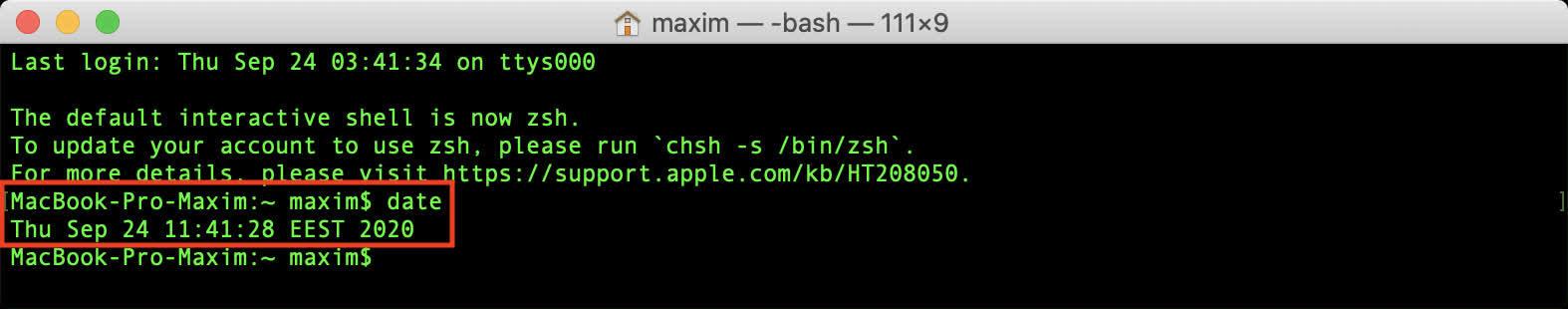 Как результат, в командной строке терминала, у вас будет показана дата.