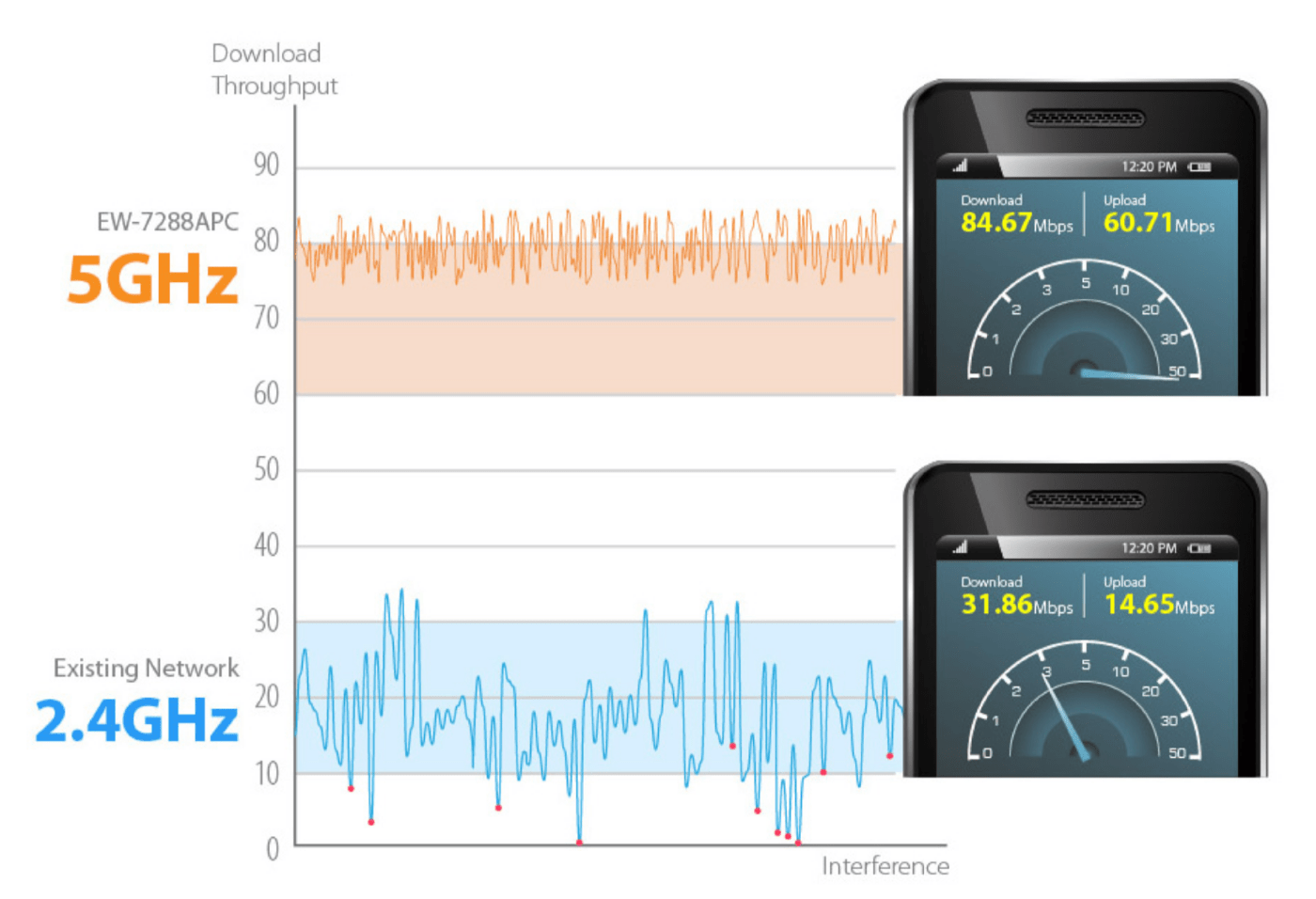 Плюс к этому ещё не все компьютеры и телефоны поддерживают работу в стандарте 802.11ac. Лучше покупать репитер, который поддерживает разные технологии — и поставить автоматический режим переключения между ними.