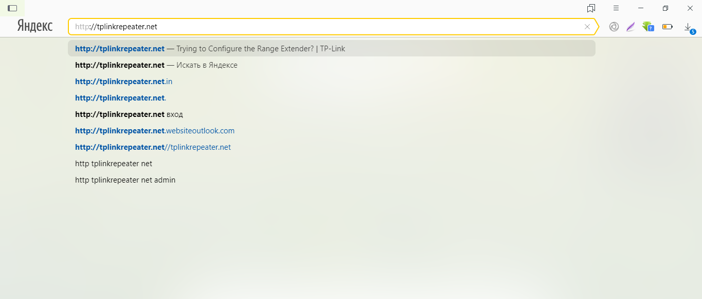 - В браузере откройте страницу http://tplinkrepeater.net или http://192.168.0.254. Для репитеров других производителей адрес будет другой — ищите его на этикетке либо в самой документации.