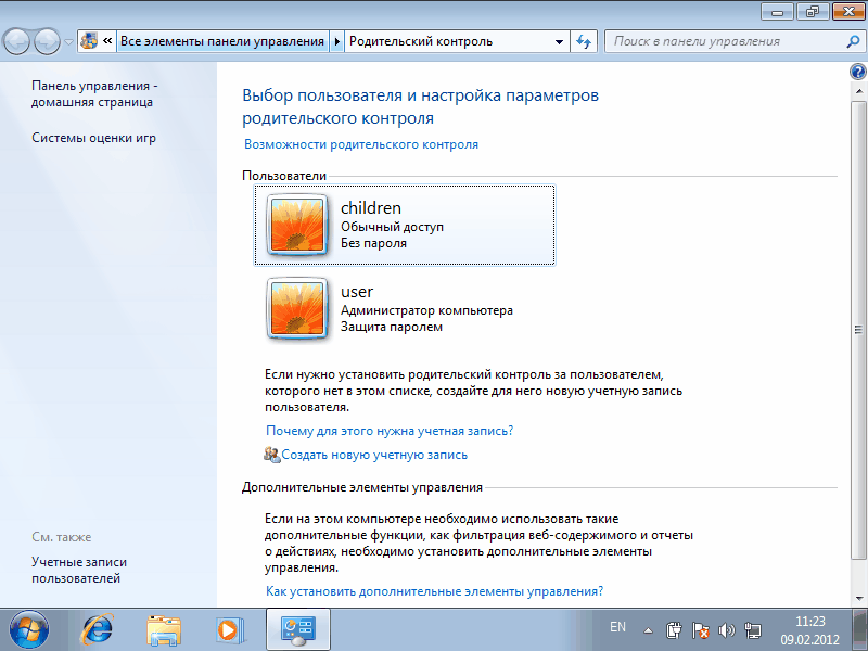 Примечание. Средства для обеспечения родительского контроля входят в состав операционных систем Windows начиная с Vista. Если у вас более ранняя версия ОС, то придется воспользоваться программами сторонних производителей. Средства для ограничения доступа к приложениям, играм и сайтам есть во многих комплексных приложениях для обеспечения безопасности, например в Norton Internet Security и Kaspersky Internet Security.