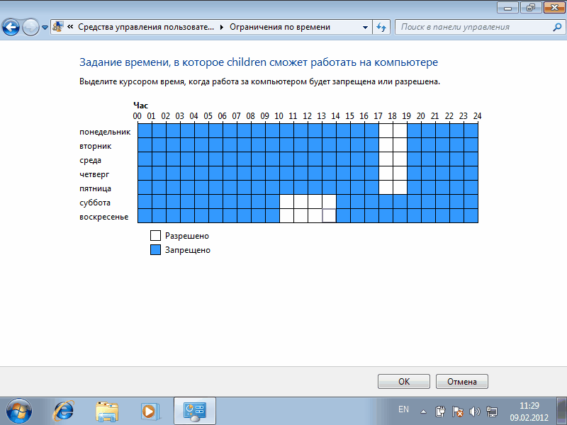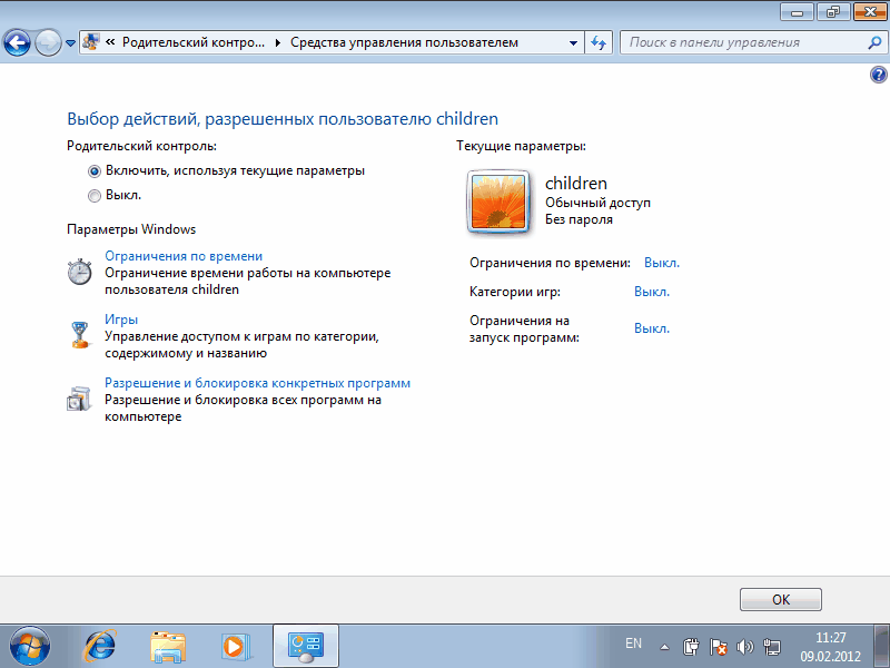 Родительский контроль в Windows 7. (Parental control)