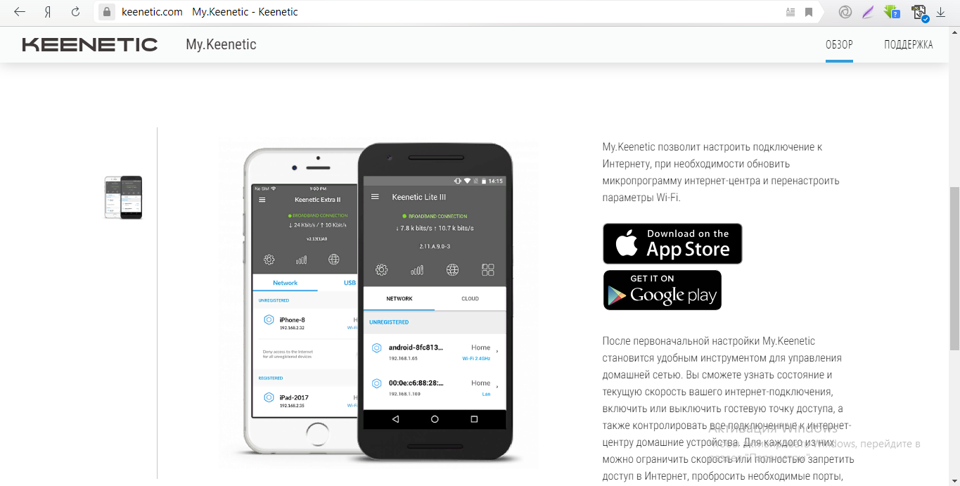Первый способ подходит для ПК, так как у него есть разъём для сетевого кабеля, а второй — для смартфона и планшета. Однако, если у вас нет кабеля, вы можете использовать «Вай-Фай», чтобы связать компьютер и роутер. Если хотите настроить маршрутизатор с помощью телефона, лучше скачайте фирменную утилиту My.Keenetic с «Гугл Плей Маркета» или App Store. На ПК используйте веб-оболочку (вам нужно будет всего лишь открыть нужную страницу в браузере).
