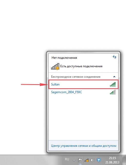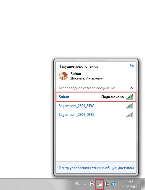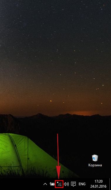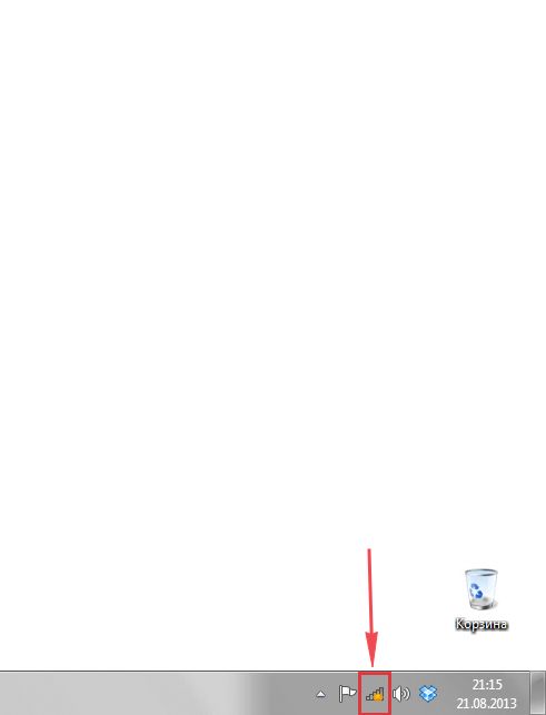 - Предварительно включите роутер и подождите, пока он прогрузится. Щёлкните по значку сети рядом с датой и временем. На нём должна быть жёлтая иконка — это означает, что хотя бы одна сеть (в частности, вашего роутера) доступна.