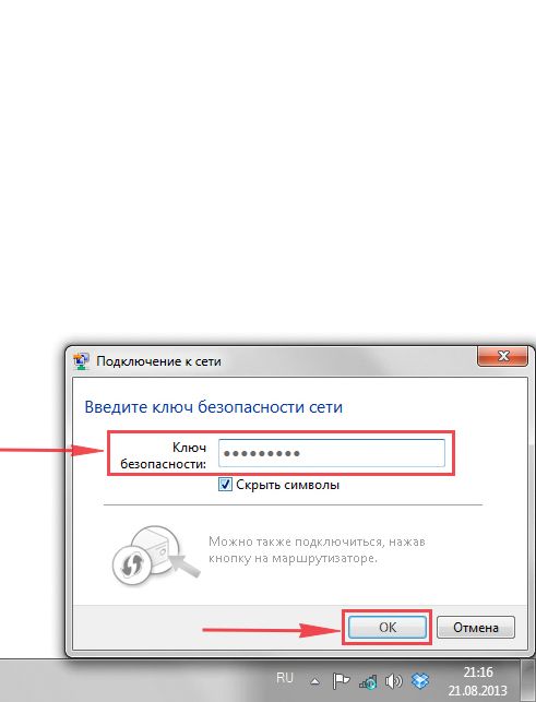 - Вбейте пароль, который находится на нижней панели роутера на этикетке. Кликните по по ОК.
