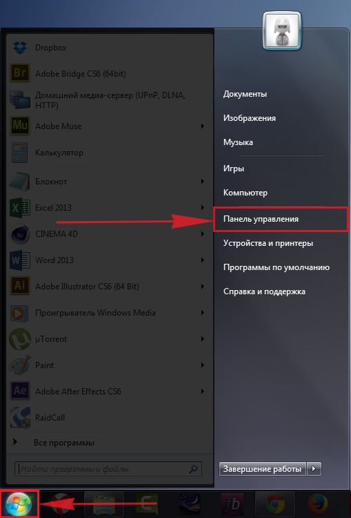 - Если у вас «Виндовс» 7, раскройте «Пуск» и щёлкните по строчке «Панель управления» в правом перечне.