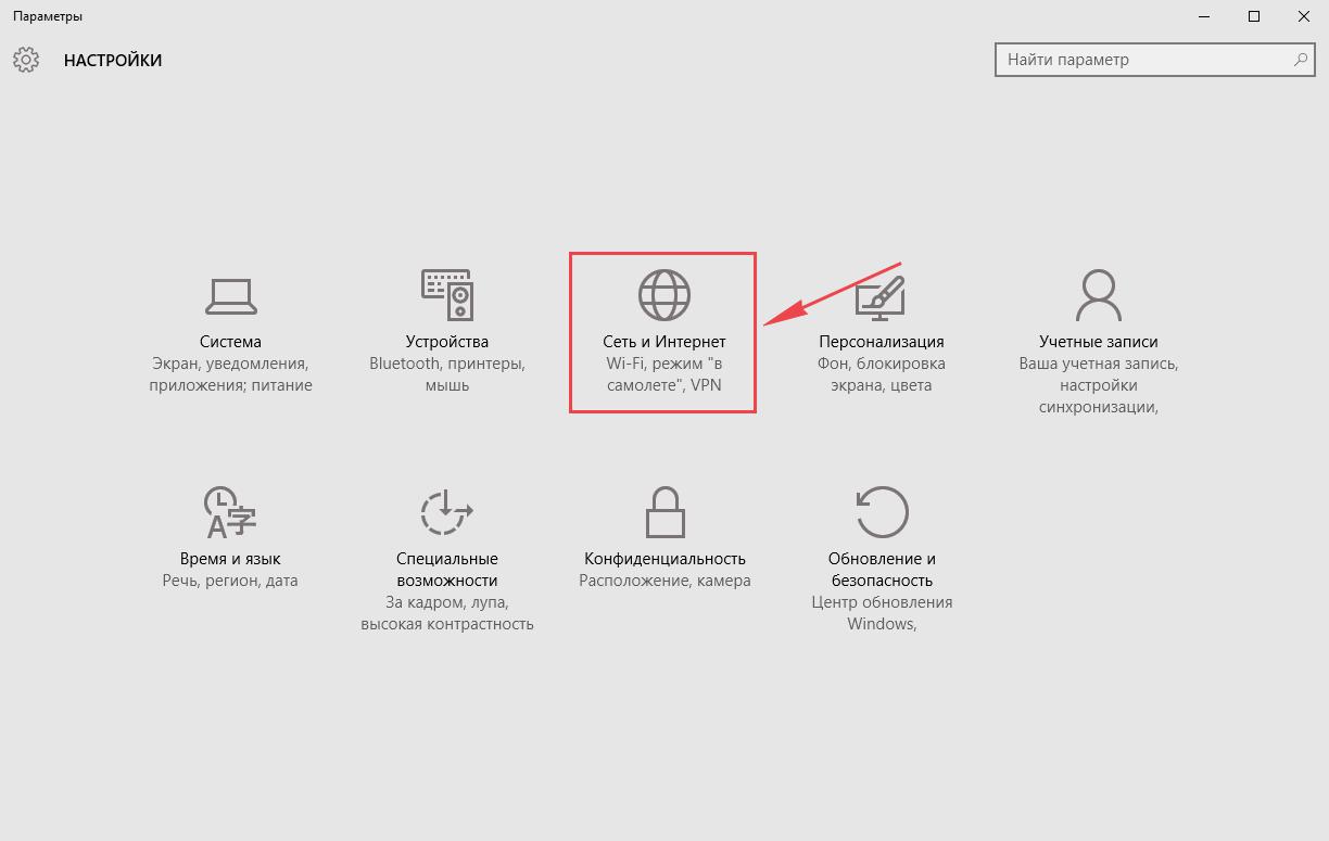 - Перейдите в плитку для интернета.