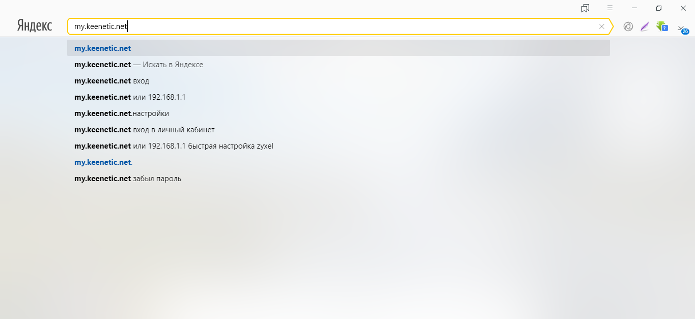 - В навигационной строчке пишем либо вставляем один из двух адресов: my.keenetic.net или 192.168.1.1. Жмём на «Энтер» для перехода.