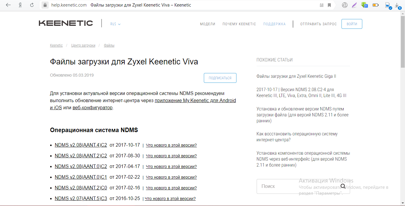 - Перейдите по этому адресу и загрузите последнюю версию прошивки для Viva с официального сайта Keenetic.