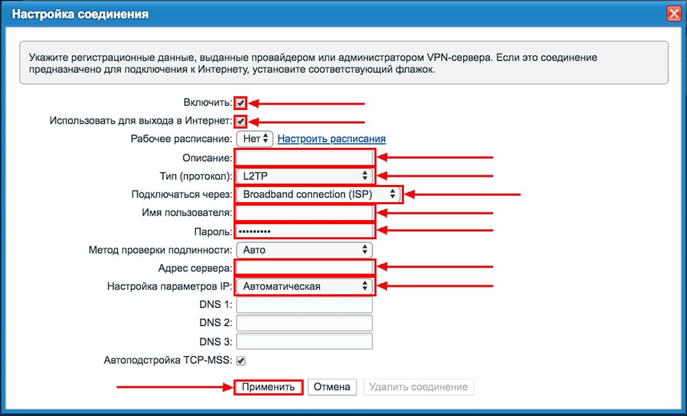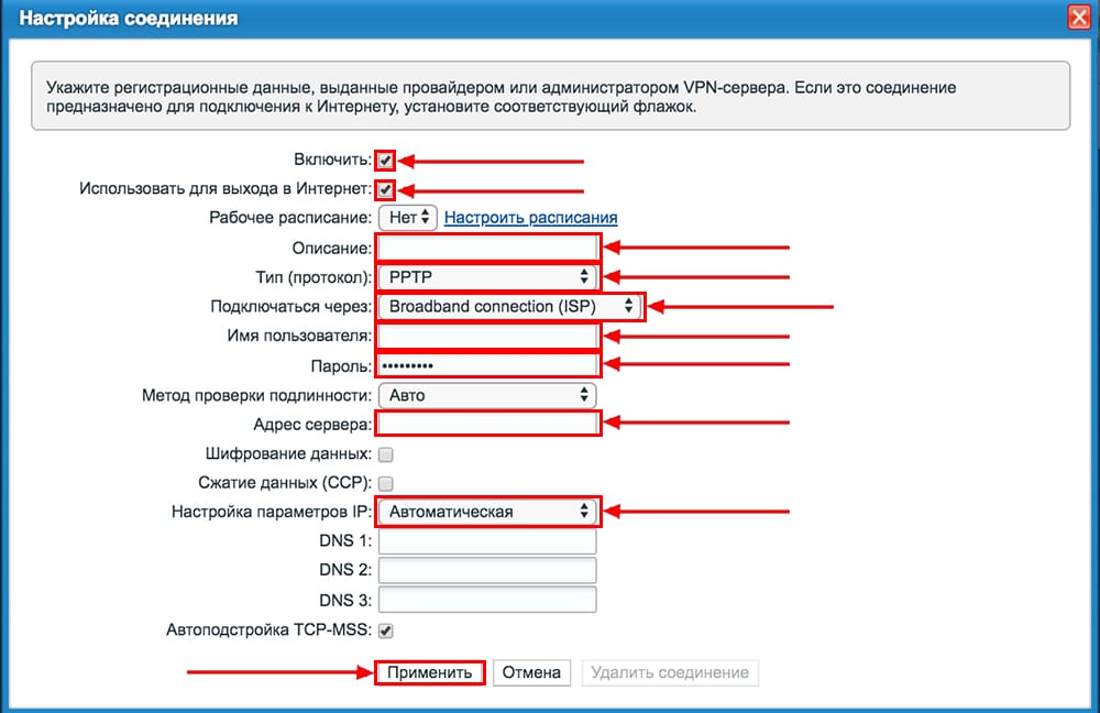 Настройка подключений L2TP и PPTP