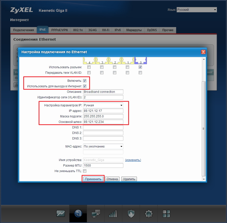 Если вы заказали у своего оператора опцию «Статический IP», вам нужно ввести предоставленный адрес (он должен быть в договоре) в специальном разделе: