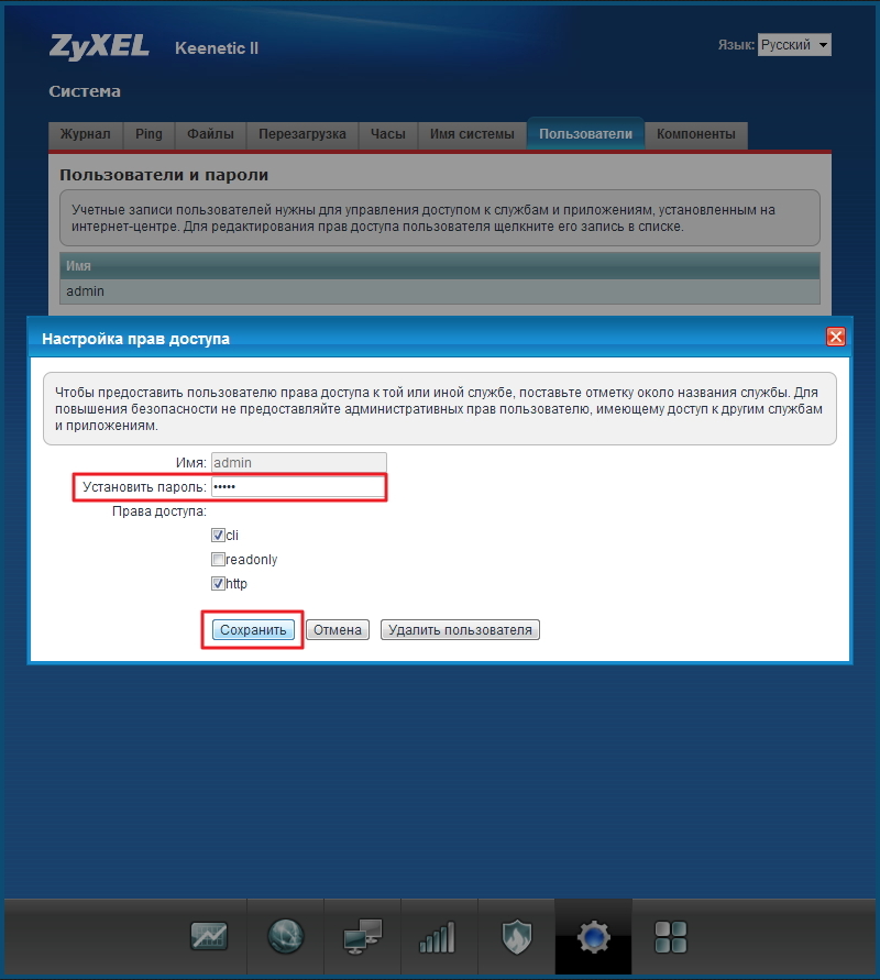 После входа в конфигуратор вам сразу предложат поменять данные для авторизации в оболочке — обязательно сделайте это для защиты вашего роутера и данных на ПК. Введите два раза сложный пароль и сохранитесь. Чтобы его не забыть, запишите его в блокноте или файле Word, к которому другие не имеют доступа.