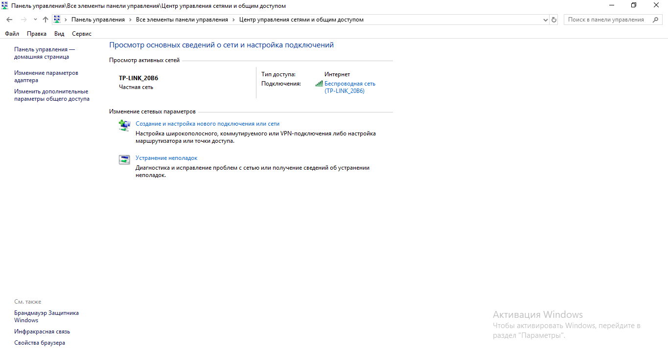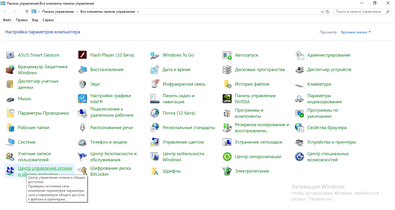 - Зайдите в «Центра управления сетями» через контекстное меню сетевой иконки (на Windows 7) либо через «Панель управления» (если другая версия).