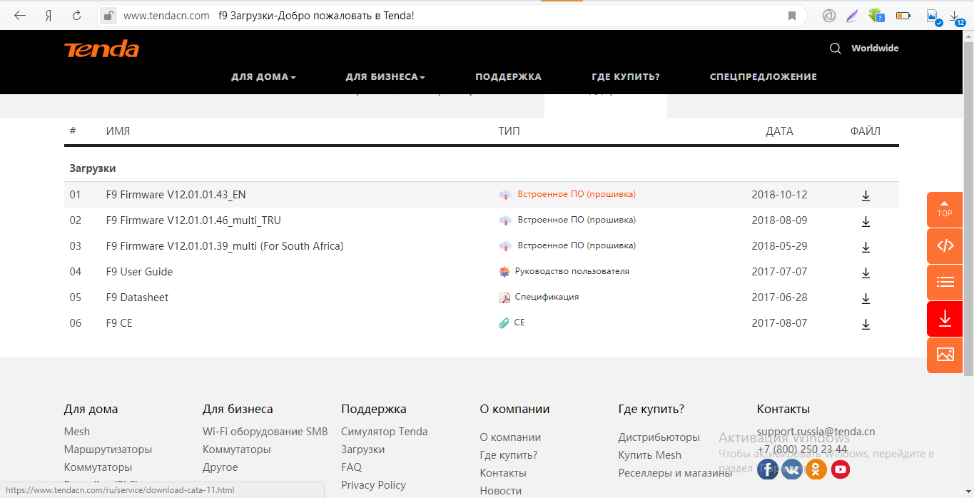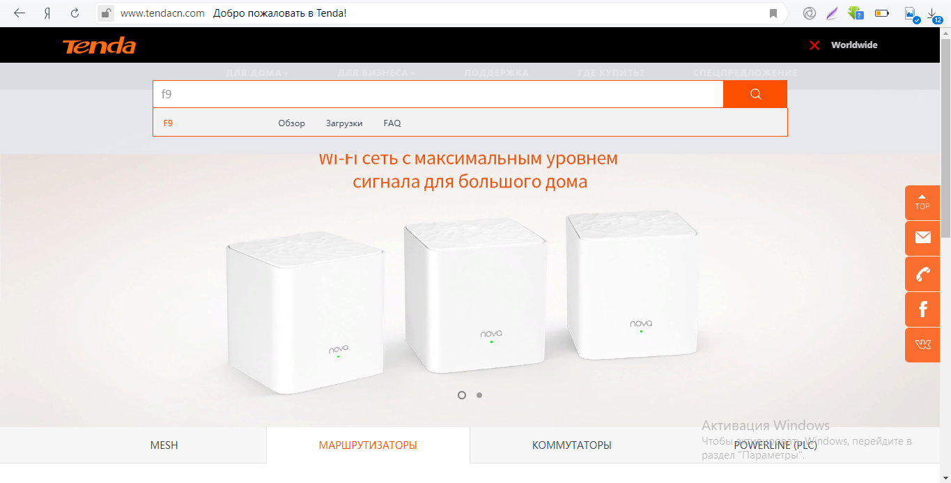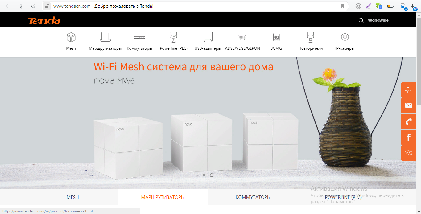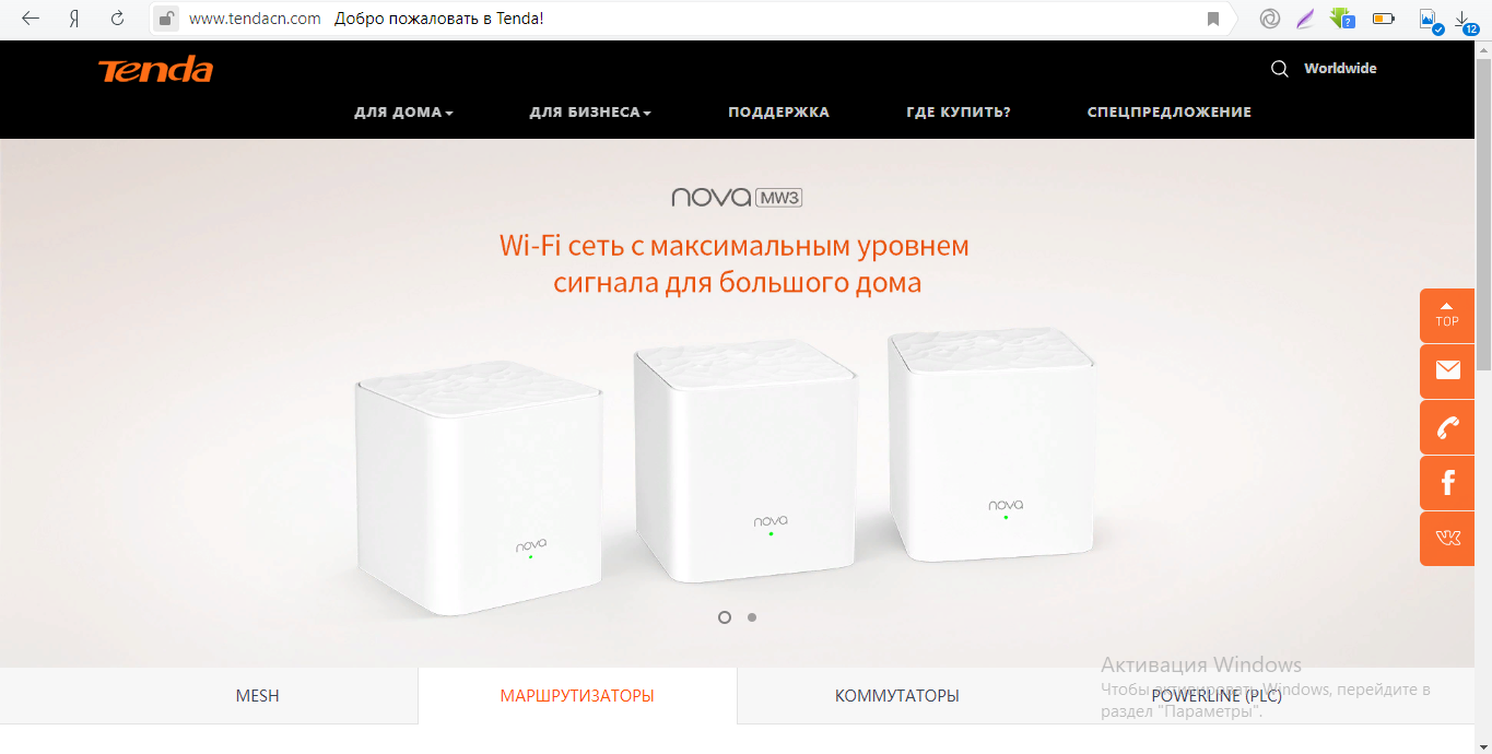 - Теперь переходим на официальную страницу компании Tenda.