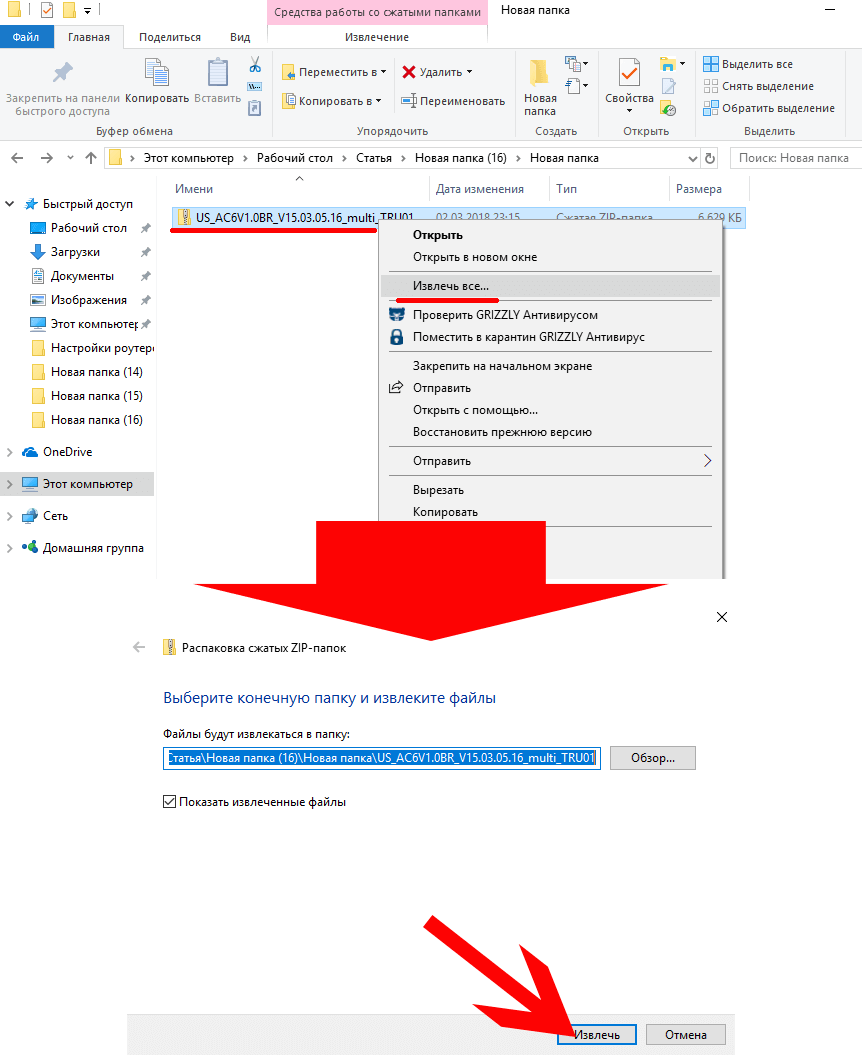 - Находим в «Проводнике» архив и распаковываем его.