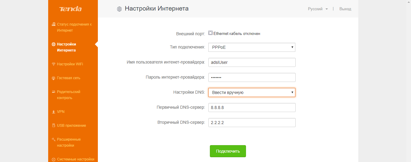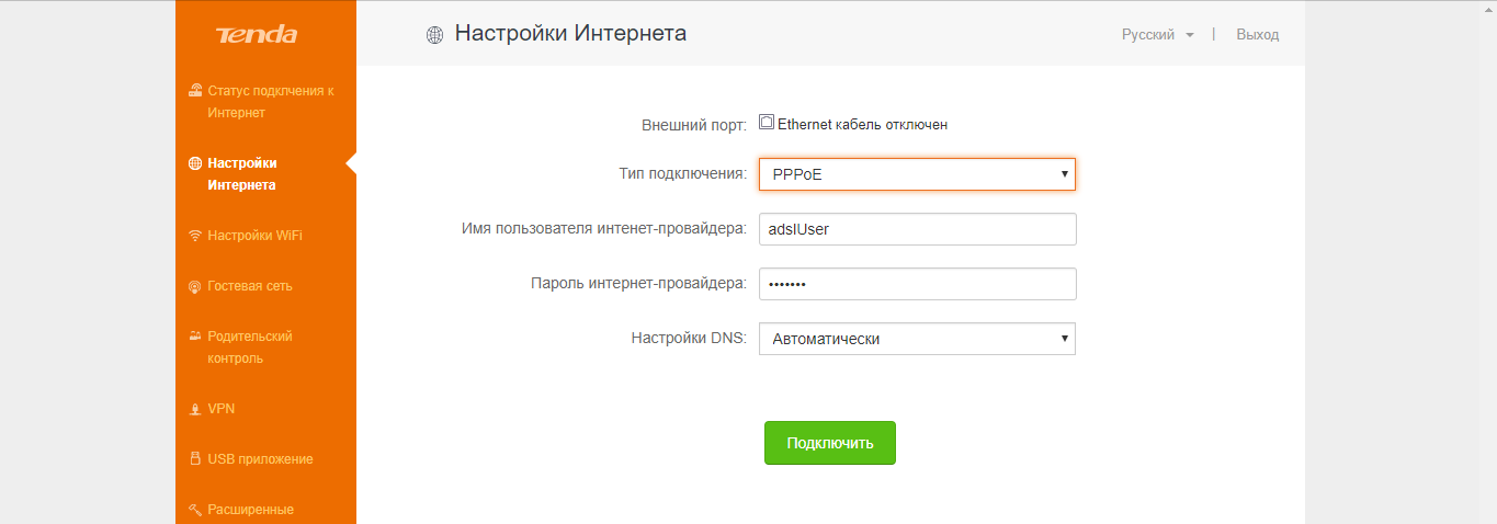 Подключение роутера Tenda