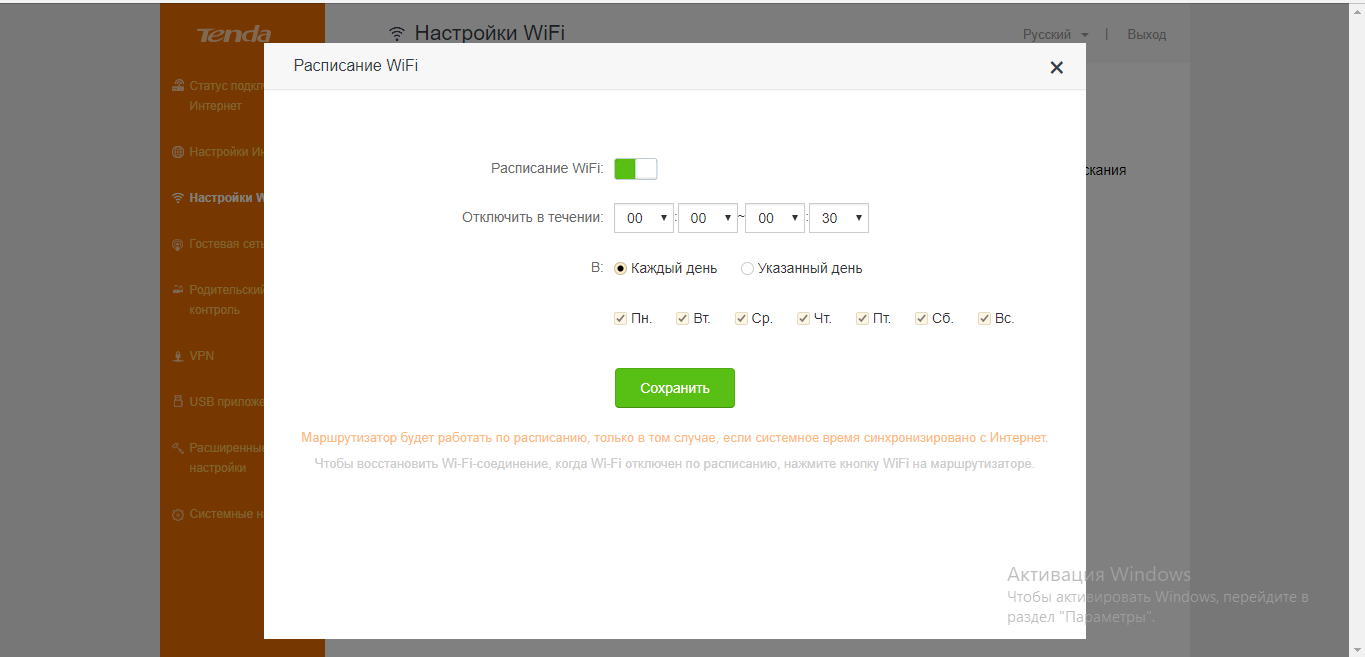 - В расписании при необходимости указываем период, в течение которого девайс не будет работать (будет сам отключаться и через некоторое время включаться).