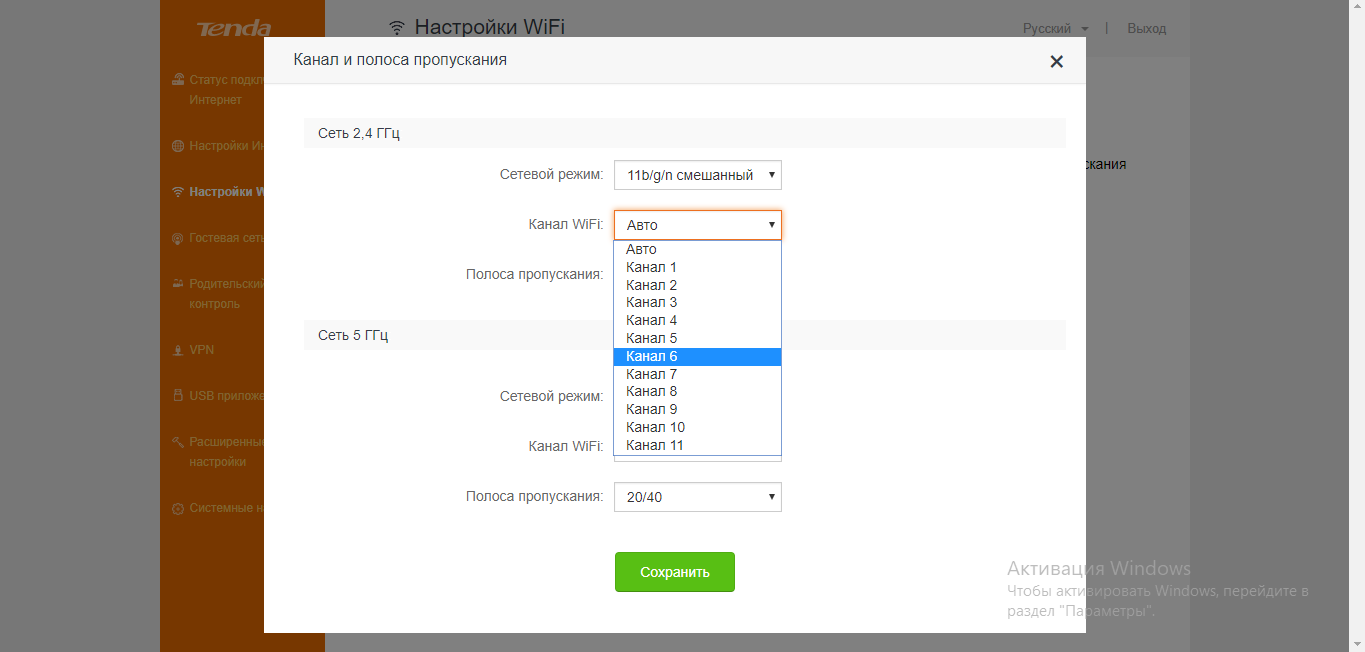 - В канале и полосе пропускания меняем сетевой режим, если есть какие-либо требования со стороны провайдера. Канал по возможности оставляем на «Авто».