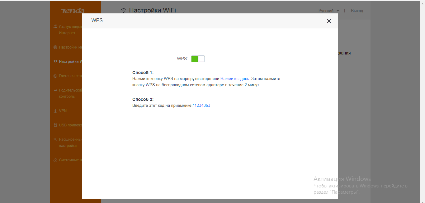 - В блоке WPS включается одноимённая функция, которая позволяет зайти в точку доступа без пароля (с помощью нажатия на физическую клавишу с таким названием на роутере либо же через ввод кода на устройстве).