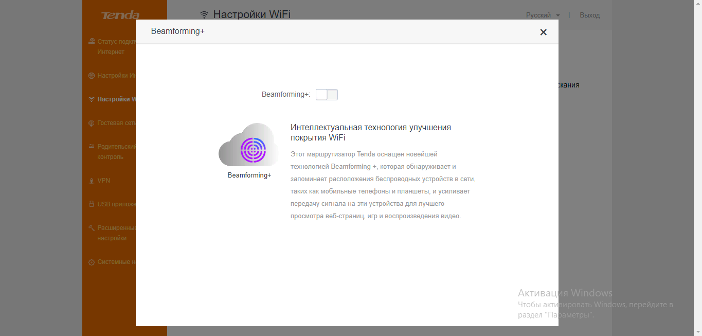 - В некоторых моделях роутеров Tenda присутствует опция Beamforming — технология улучшения зоны покрытия «Вай-Фай». С помощью неё сетевой девайс распознаёт и запоминает, где находятся устройства, которые подключены к точке, а затем усиливает передачу сигнала на эти девайсы.