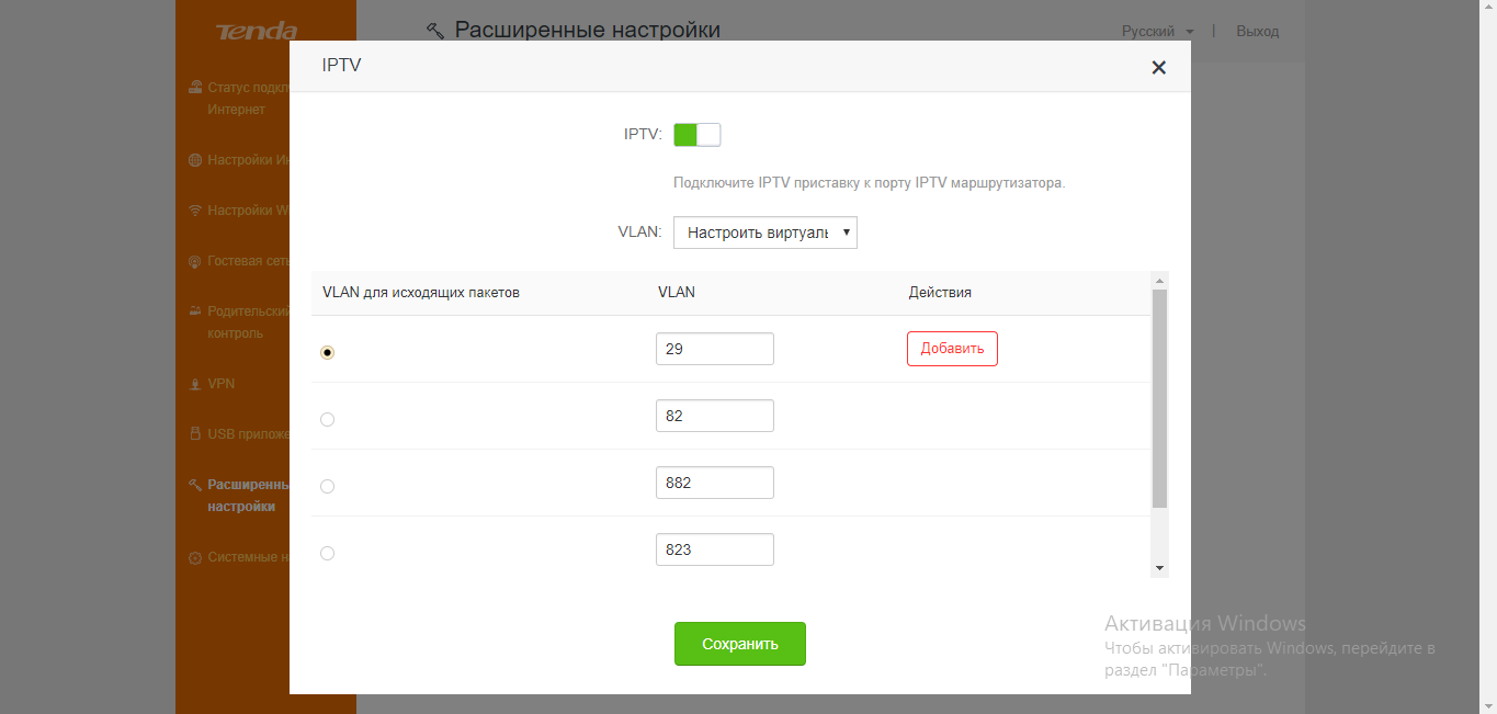 - Узнаём у своего провайдера номер VLAN, вбиваем его в поле и сохраняем изменениям. Так же перезапускаемся и смотрим, работает ли цифровое вещание.