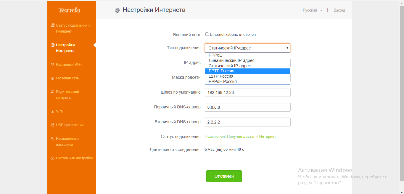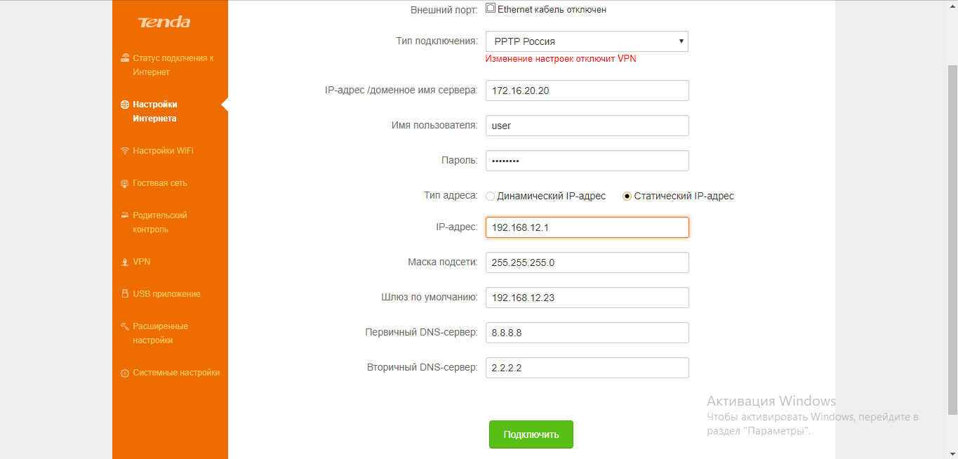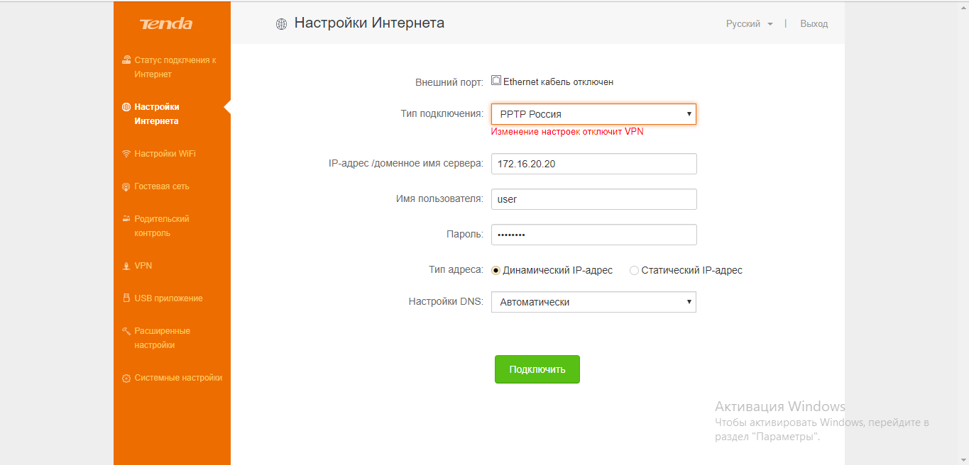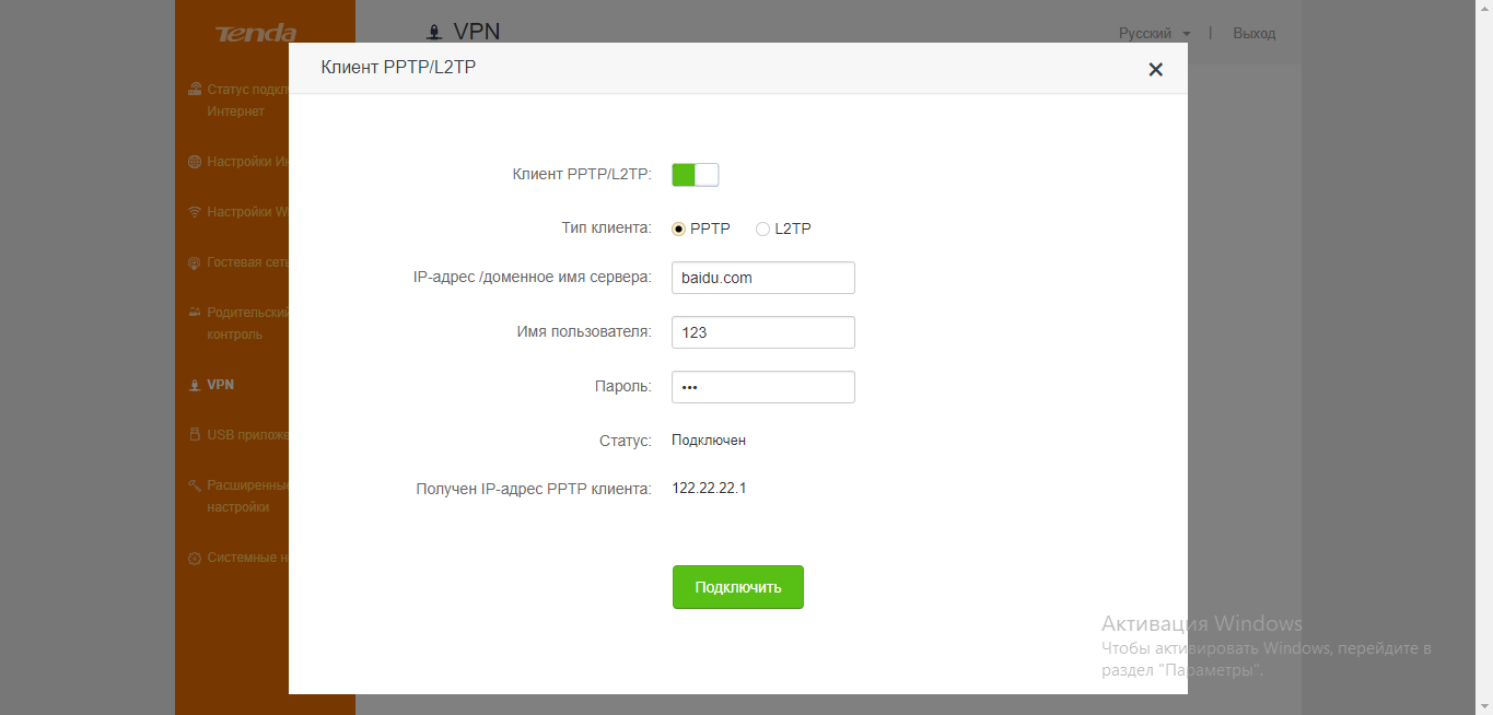 Как настроить PPTP или L2TP на Tenda: