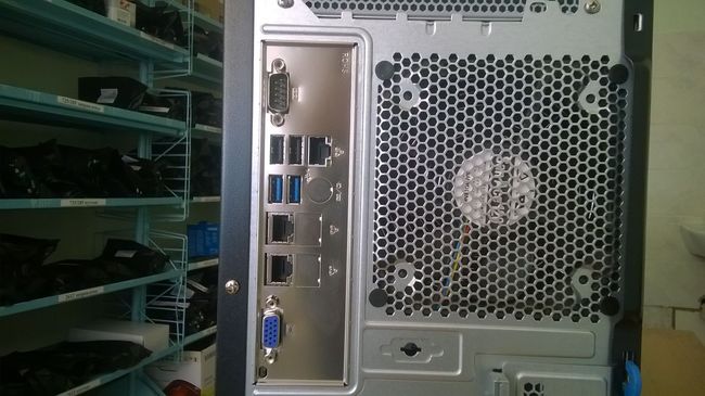 Среди разъемов на сервере числятся COM, несколько USB, три сетевых порта и VGA.