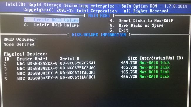 Оказавшись в меню видим наши жесткие диски и их статус – Non-RAID Disk.
