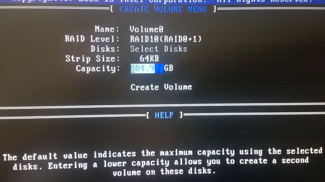 RAID Level:RAID10 (RAID0+1) в этом пункте из доступных оказался RAID 0+1. Это получается, что два RAID0 объединяются в один RAID1.