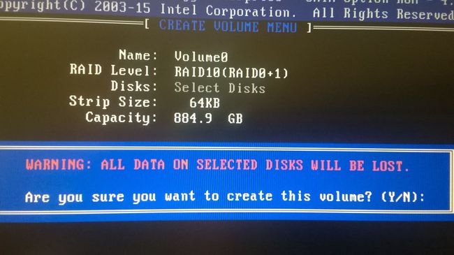 Выбираем последний пункт Create Volume и нажимаем Enter. Последует системное предупреждение, о том, что будут удалены все данные с диска. Соглашаемся – Y.