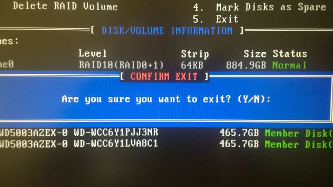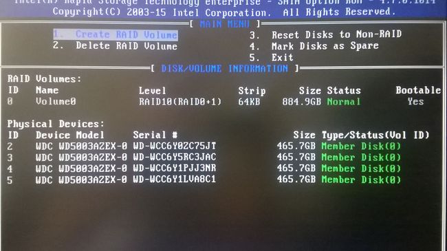 RAID 0+1 создан. Статус дисков изменился на Member Disk(0).