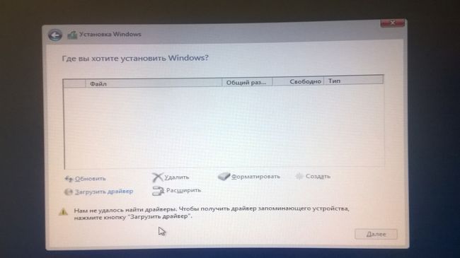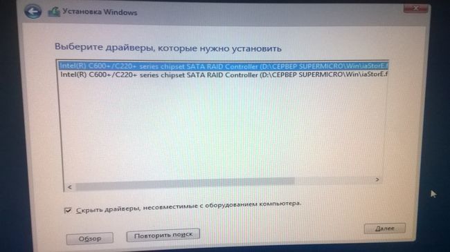 Далее возник проблемный момент. В системе не обнаружилось драйверов для HDD, а точнее для созданного массива RAID.