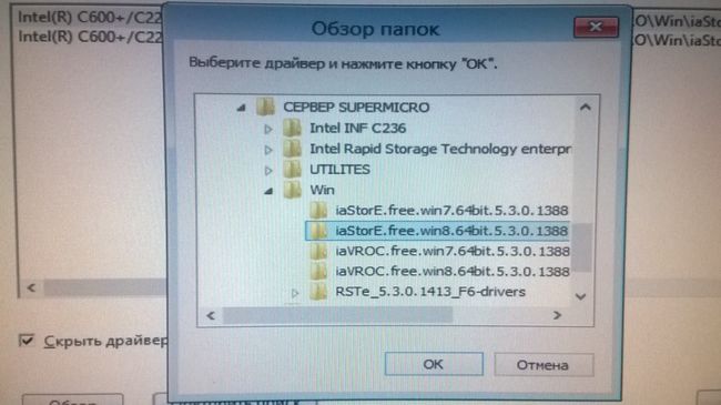 Скачать драйвер можно с сайта Intel или с сайта Supermicro по маркировке материнской платы в разделе SATA. У нашего сервера мат. плата X11SSL-F, а чипсет Intel C232, но подошло что-то другое по названию.