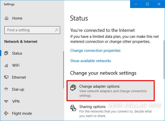 Шаг (2). Теперь в разделе «Состояние сети» нажмите «Изменить параметры адаптера», чтобы открыть «Сетевые подключения».