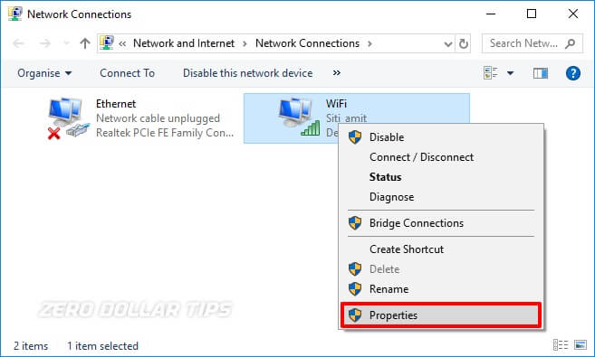 Шаг (3). Теперь в окне «Сетевые подключения» щелкните правой кнопкой мыши сетевой адаптер (WiFi) и выберите «Свойства».