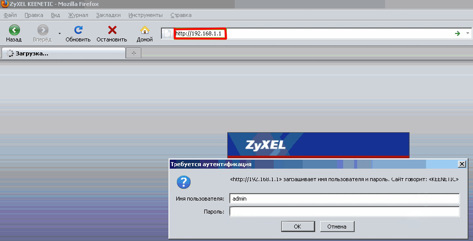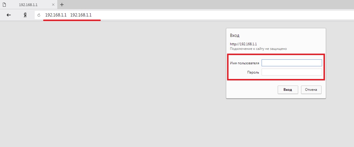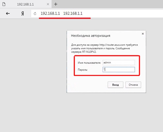 - Откройте браузер и введите адрес 191.168.1.1, а затем войдите на страницу настроек роутера, введя в качестве имени пользователя и пароля слово admin.