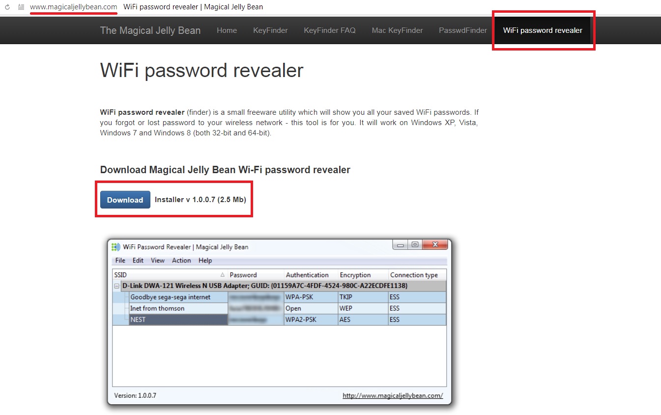 - Перейдите по ссылке Magical Jelly Bean, откройте страницу WiFi Password Revealer и нажмите кнопку Download.