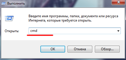 - Запустите функцию «Выполнить», нажав комбинацию клавиш WIN+R, наберите cmd и нажмите кнопку ОК.