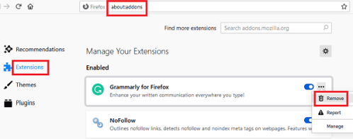 Для Firefox откройте about:addons в адресной строке и перейдите на вкладку Extensions. Вы можете удалить проблемные расширения оттуда.